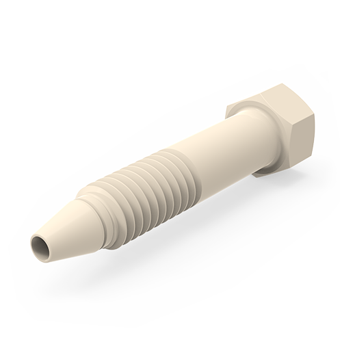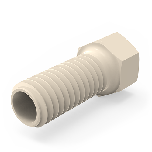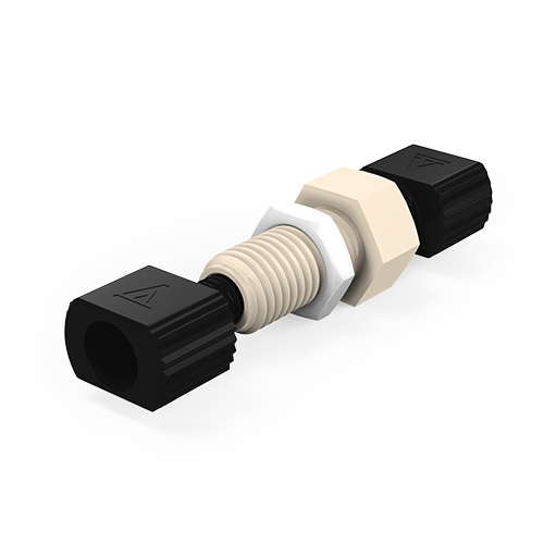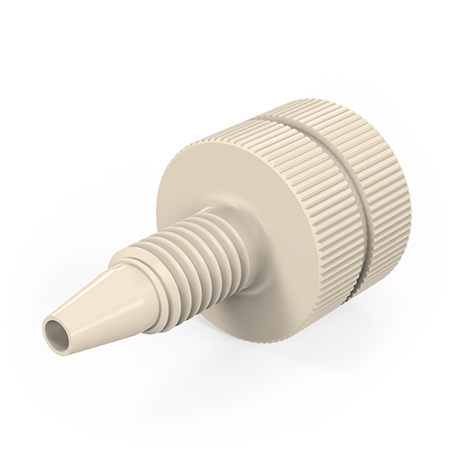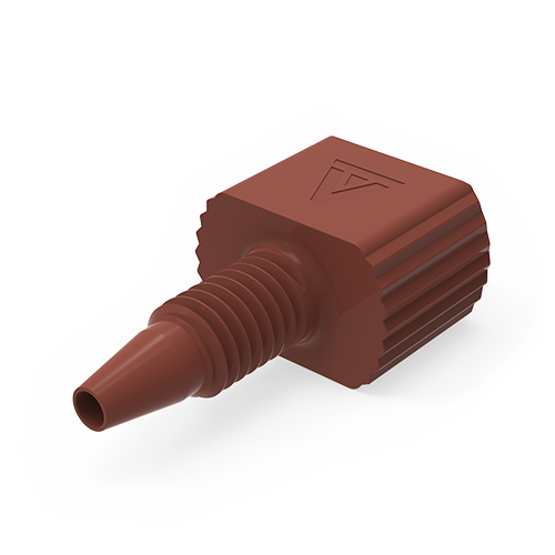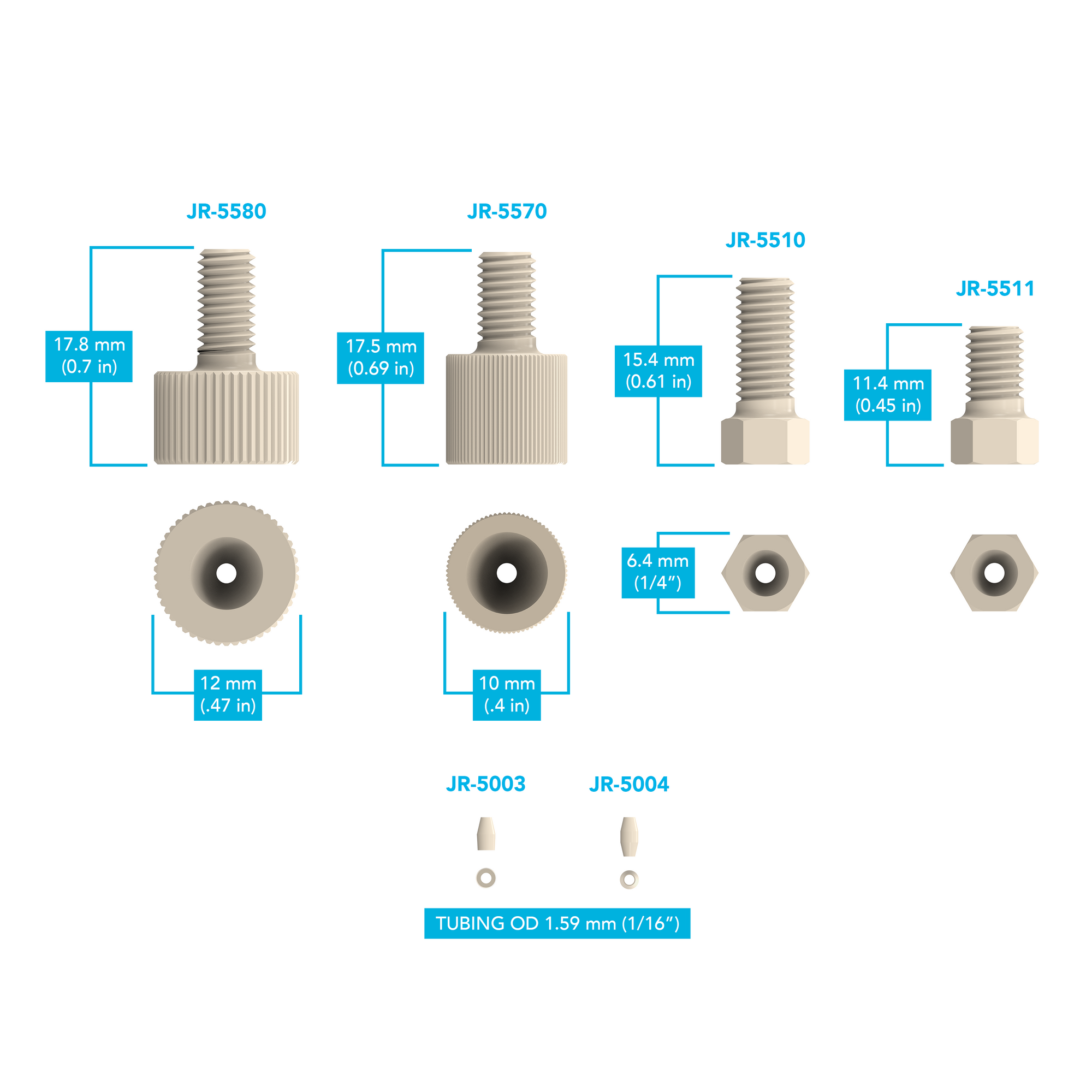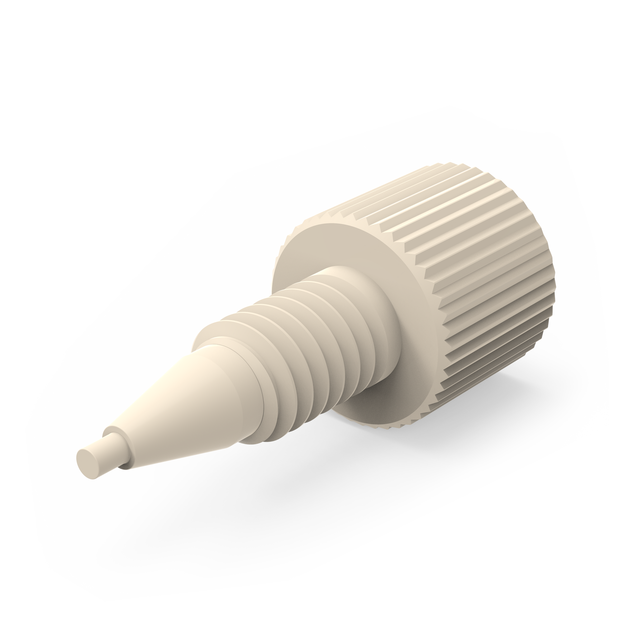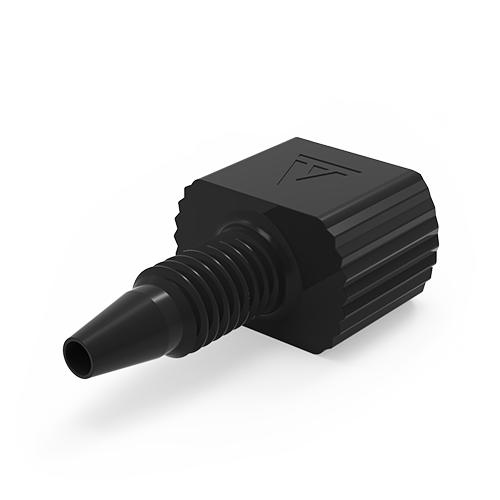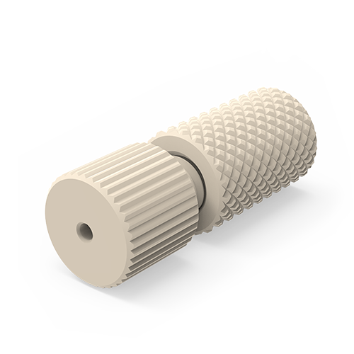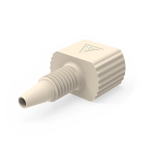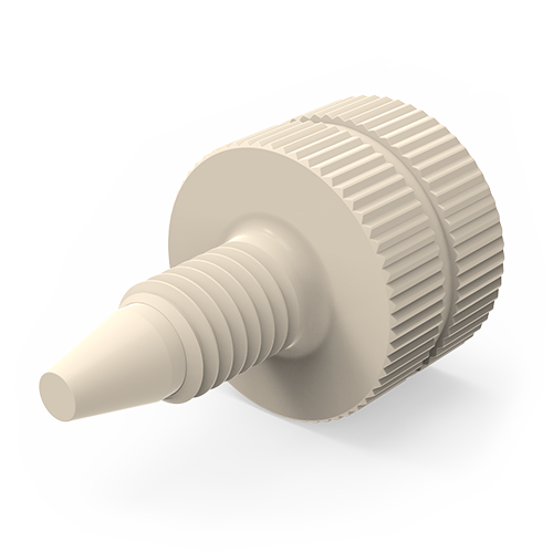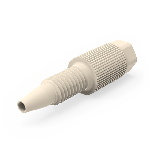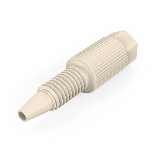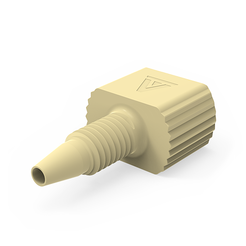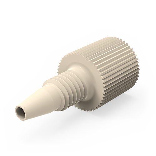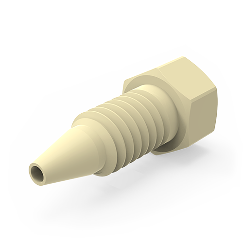 All high-pressure polymeric fittings are manufactured from high-quality inert polymers to exacting tolerances. Most are rated for use up to 350 bar (5000 psi) with fingertight nuts, which is well beyond the burst strength of most PEEK tubing. Fittings made with special PEEK-HT can be used up to 1000 bar (14,500 psi).