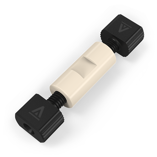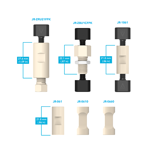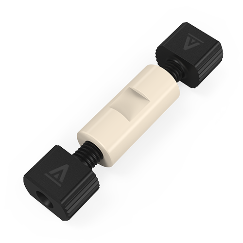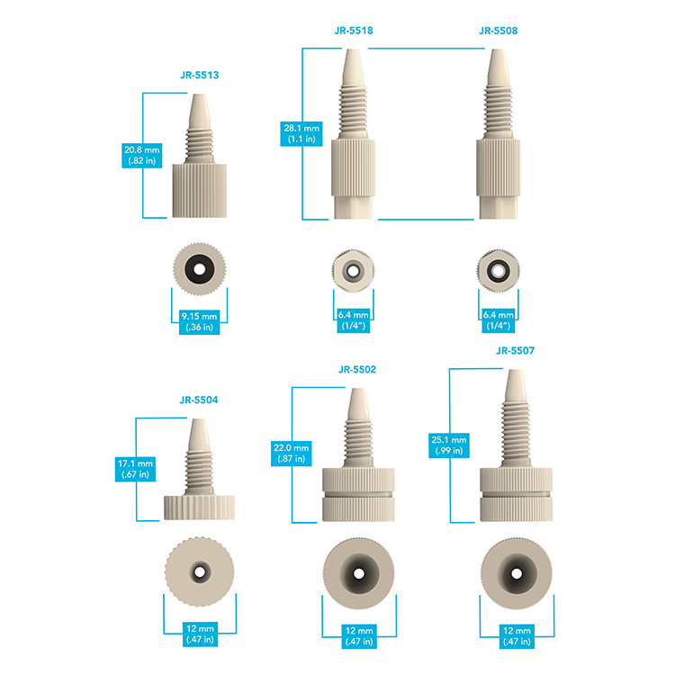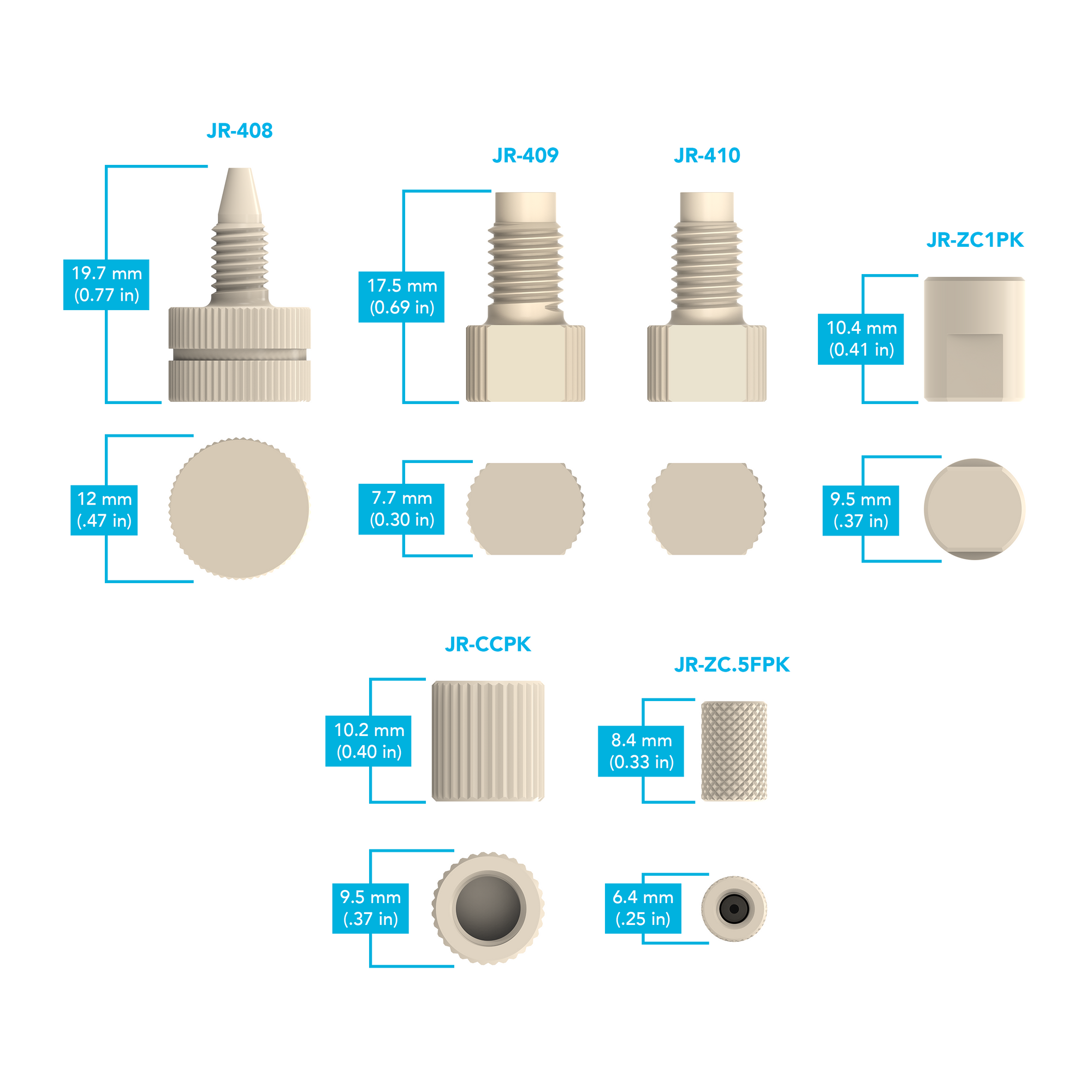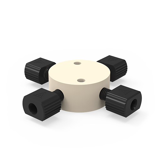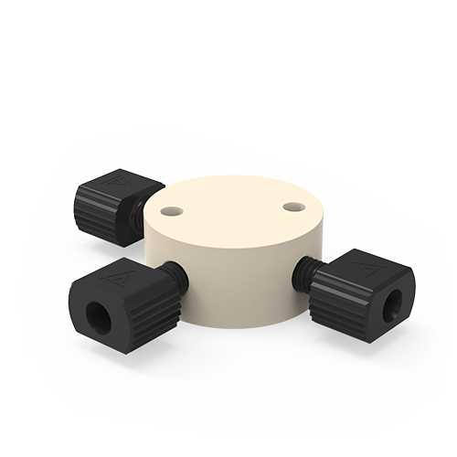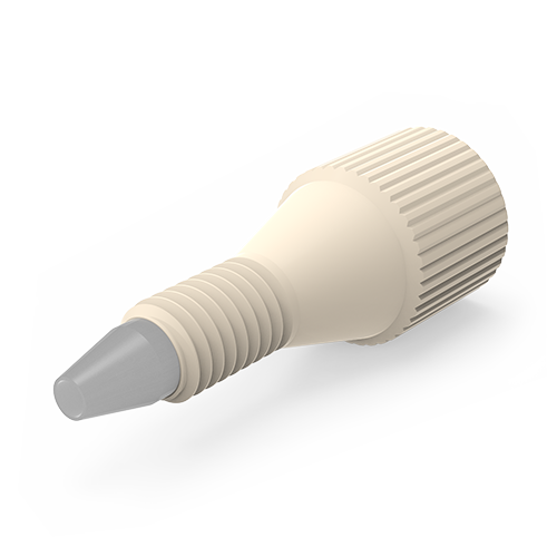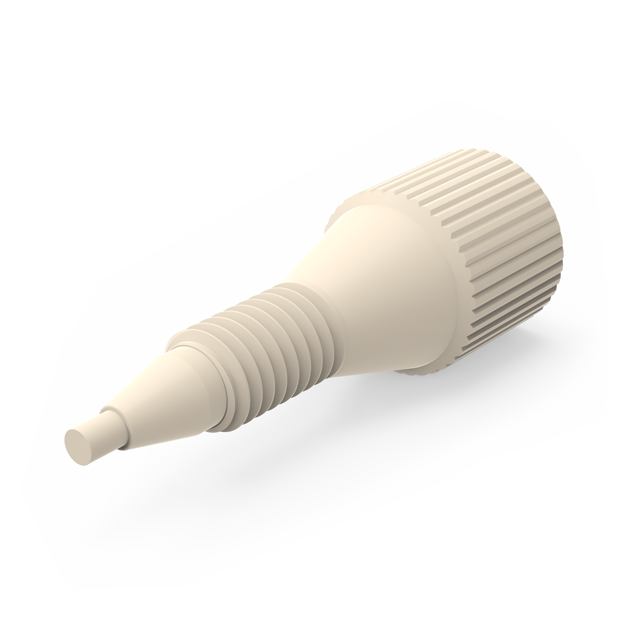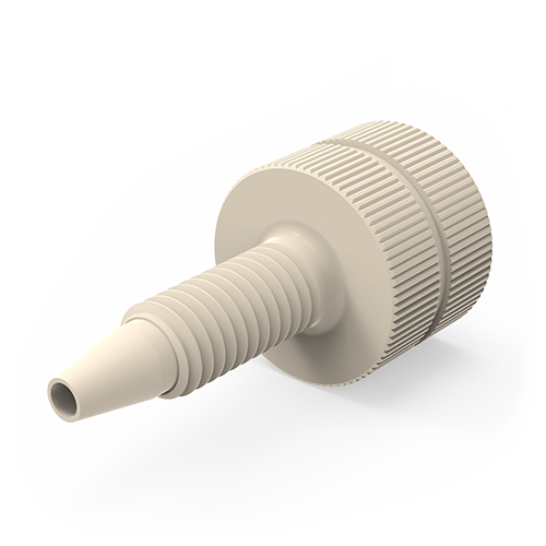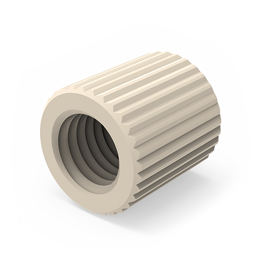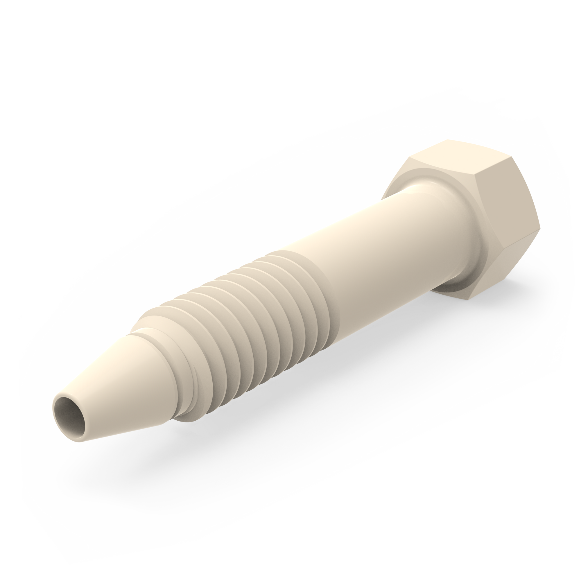 All high-pressure polymeric fittings are manufactured from high-quality inert polymers to exacting tolerances. Most are rated for use up to 350 bar (5000 psi) with fingertight nuts, which is well beyond the burst strength of most PEEK tubing. Fittings made with special PEEK-HT can be used up to 1000 bar (14,500 psi).